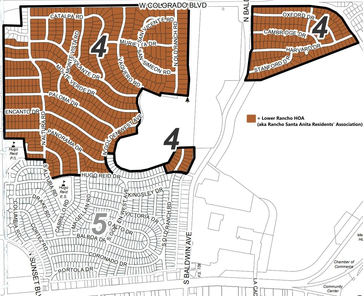 The Lower Rancho HOA is a community of 775 homes in Arcadia, CA. Located south of Colorado Boulevard, and east of Michillinda Avenue to the LA County Arboretum; as well as the College Streets east of Baldwin Avenue.